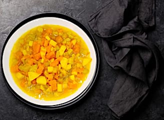 מרק ירקות כתומים בתערובת הרמונית של טעמים המגרים את בלוטות הטעם.
