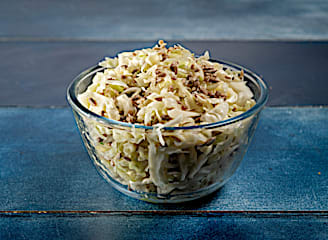 עלי בייבי, עלי סלק בייבי, לבבות חסה, חרדל דיז'ון גרגירים, דבש, לימון, שמן זית, מלח, פלפל שחור.
