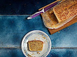 עוגה בחושה ואוורירית עם תמצית וניל מדגסקר אמיתית ואוכמניות.