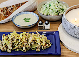 טופו, נצרי במבוק, בצל לבן, אפונה, צ'ילי מתוק, שמן שומשום, ג'ינג'ר, שום, שמן קנולה