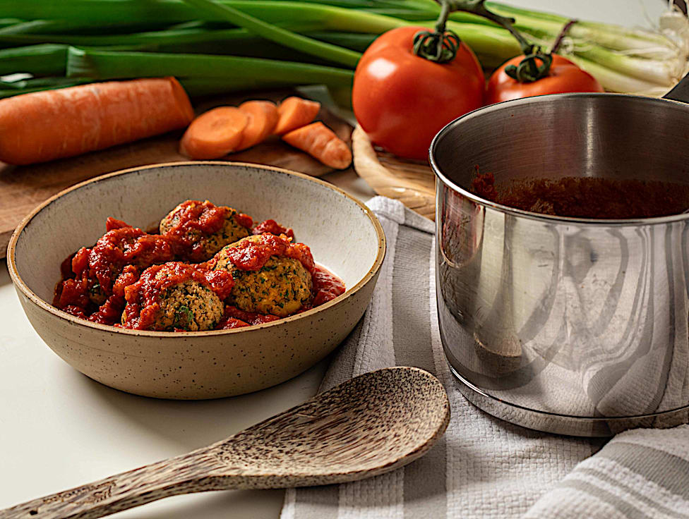 קציצות טופו במרקם נגיס ברוטב עגבניות
