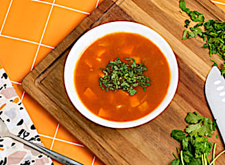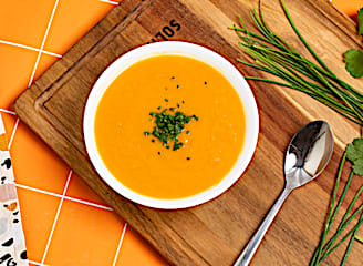 מרק המכיל רצועות בצל לבן צרובות בבישול איטי עד לקרמול מושלם! בתיבול של אבקת מרק בצל מלח וטימין טרי!