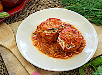 פלפל ממולא באורז, בצל מטוגן ועשבי תיבול טריים, מבושל ברוטב עגבניות ביתי וחמצמץ שמחמיא לטעמים.** לא מכיל גלוטן עד רמת התבלינים, כלים נקיים ואריזה נפרדת (הסביבה אינה סטרילית מגלוטן)