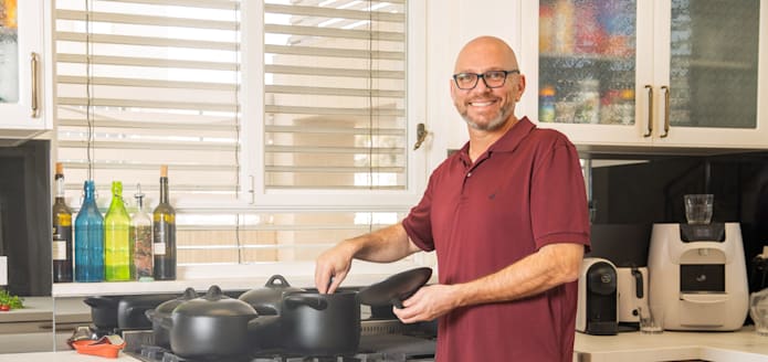 את האהבה שלי לבישול הוצאתי לפועל בהכנת מנות ללא גלוטן (יש לי אי-סבילות גבוהה לגלוטן) וללא סוכר לבן, וכך אני מוכיח כל פעם מחדש לסובבים אותי (בייחוד לאשתי ולשלושת ילדיי - המבקרים הכי גדולים שלי), שאפשר לאכול מאכלים בריאים וטעימים גם בלי גלוטן וללא תוספת סוכר לבן.