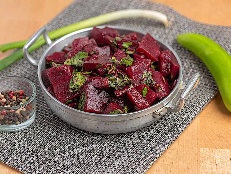 קוביות סלק מבושל בתיבול עשיר של עשבי תיבול טריים