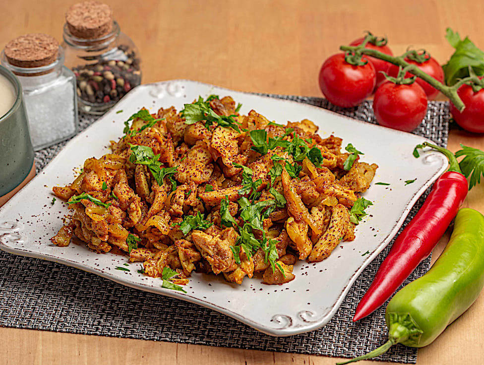 נתחי פרגית טריים שנצלו בדיוק רב עד לקבלת מרקם רך ונימוח. המנה משלבת בצל זהוב מקורמל ותערובת תבלינים סודית שיוצרת מעטפת עסיסית ומלאת טעם בכל ביס. חוויה של רחוב, באיכות של בית.