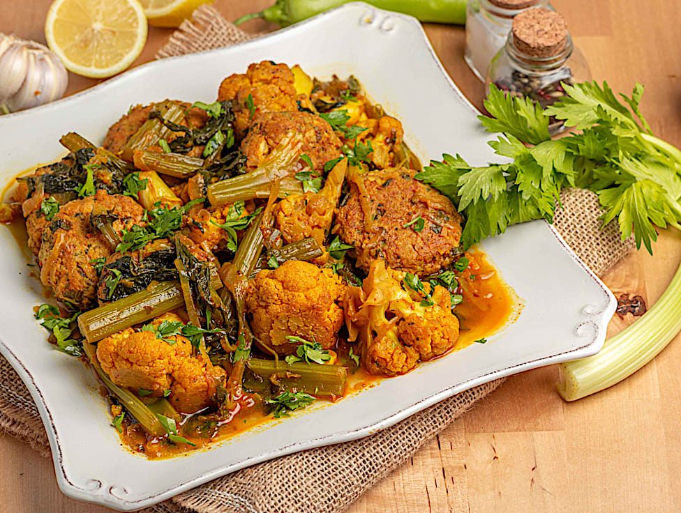 תבשיל קציצות עוף עם כרובית וכרפס – ביתי, מנחם ומלא טעם