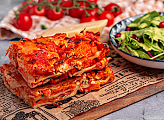 ארנציני ממולא בפרמזן ופסטו: ריזוטו, פירורי לחם, ביצה, מלח, חרדל, בזיליקום, קשיו, אגוזי מלך, פרמזן, מיץ לימון, שמן זית, שום, שמן סויה, מוצרלה