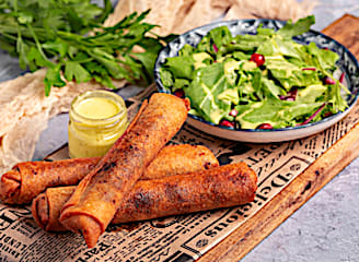 מנה מכילה 2 חצאי פיתה בליווי סלסלה עגבניות ואיולי בזיליקום