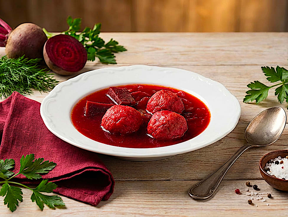 מנה שהיא כולה אהבה וגעגוע. קובות סולת דקיקות ורכות, ממולאות בבשר בקר מתובל ועסיסי, שנסגרות אחת-אחת בעבודת יד קפדנית. הקובות מתבשלות לאט בתוך מרק סלק עמוק, חמצמץ-מתוק וקטיפתי, עם שפע סלקים טריים וריח משכר של בית. המנה הכי מנחמת שיש.