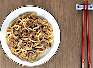 נודלס עם כרוב וגזר ברוטב עדין של סויה ושמן שומשום.