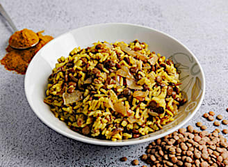 אורז לבן עם אפונה ובצל מטוגן או אורז עם אטריות