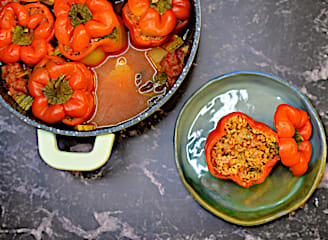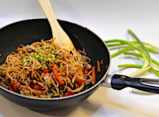 אורז, טופו, אפונה, גזר, קישוא, תירס, פלפל אדום, סויה