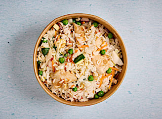 פרוסות עוף, רוטב פטריות, רוטב סויה, סוכר, שום טרי, ביצה אורגנית, אטריות אורז, רבע ליים.