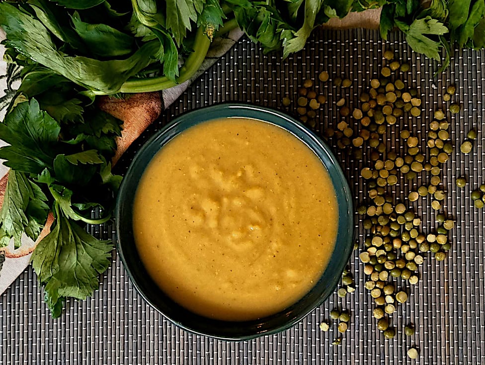 אפונה,בצל,שום,גזר,סלרי,פטרוזיליה,קרם קוקוס,שמן זית,מלח,פלפל,משחת קארי ירוק