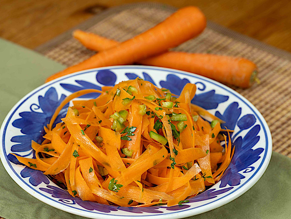 גזר,פלפל חריף,כוסברה,שמן זית,לימון,מייפל,שום,מלח,פלפל