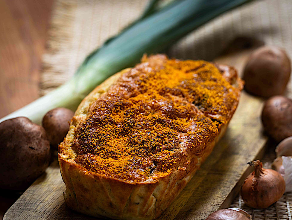 פשטידה רכה ועשירה מפטריות מוקפצות וכרישה וגבינת גאודה מתובלת בעדינות ומאוזנת.