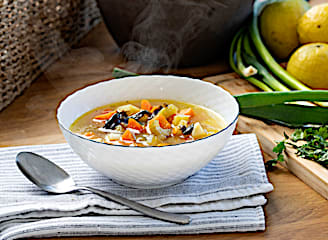 שעועית, שמן קנולה, בצל, גזר, סלרי, שום, כמון, פפריקה, מלח, פלפל שחור, ציר ירקות, תפוח אדמה, קישוא