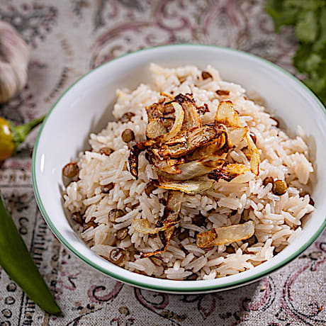 ** מג'דרה - ניתן להזמין עם אורז במקום בורגול